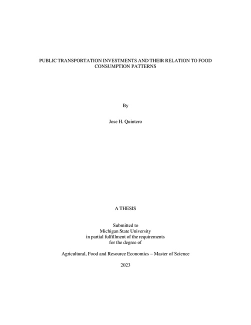 PUBLIC TRANSPORTATION INVESTMENTS AND THEIR RELATION TO FOOD CONSUMPTION PATTERNS