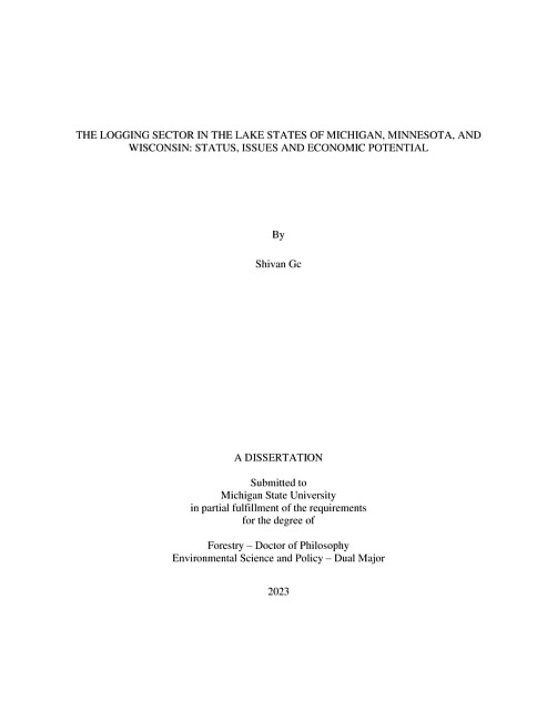 THE LOGGING SECTOR IN THE LAKE STATES OF MICHIGAN, MINNESOTA, AND WISCONSIN : STATUS, ISSUES AND ECONOMIC POTENTIAL