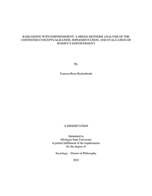 BARGAINING WITH EMPOWERMENT : A MIXED-METHODS ANALYSIS OF THE CONTESTED CONCEPTUALIZATION, IMPLEMENTATION, AND EVALUATION OF WOMEN’S EMPOWERMENT
