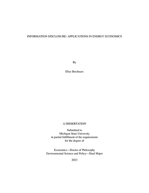 My dissertation titled, "Information Disclosure: Applications in Energy Economics," is comprised of three chapters, each based on a mandatory disclosure policy in Portland, Oregon that requires sellers to obtain and publish a home energy score assessment in real estate listings prior to selling a home. This assessment provides a variety of information about energy efficiency. In chapter 1, I examine the supply of information, studying compliance with the policy. In chapter 2, I examine the demand of information, estimating the premium for energy efficiency. In chapter 3, I evaluate changes in energy efficiency from 1900 to 2020. In doing so, I examine whether current racial disparities in energy costs can be explained by discriminatory housing policies like redlining.Chapter 1: "Is Mandatory Disclosure Really Mandatory? Evidence from Energy Assessments" When buying and selling a home, there is asymmetric information about energy efficiency, as sellers tend to have more information. To address this problem, cities across the United States have begun to adopt mandatory disclosure policies. Similar to other settings with mandatory disclosure, the policy in Portland suffers from non-compliance: 64\% of sellers obtain an assessment, and 72\% of these sellers publish the assessment (46\% overall). To understand the causes of non-compliance, I develop a theoretical model, evaluating the seller's disclosure decision. Using administrative assessment data and proprietary housing transaction data, I test hypotheses from the model. Consistent with the theory of asymmetric information, I show that sellers act strategically, as they are more likely to obtain and publish an assessment if their home is efficient. This behavior was exacerbated with the COVID-19 pandemic when the city reduced enforcement, suspending fines for non-compliance. Surprisingly, there is not full compliance among the most efficient homes. This suggests that there is a coordination problem between sellers and realtors. There is also heterogeneity by realtor, as experienced realtors are more likely to publish the assessment. Chapter 2: "What Energy Information Matters to Home Buyers?" Created by the U.S. Department of Energy, the home energy score is a discrete metric (1--10) of energy efficiency. The score allows buyers to evaluate the energy efficiency level of a home prior to purchase. In this paper, I examine the sales price premium for energy efficiency, as measured by the score. I estimate a premium of about 0.50\% ( \$2,929) for a one unit increase in the score, which is roughly equivalent to the present discounted value of the corresponding energy cost savings over a 30-year mortgage (\$2,734). Since the premium for the score is greater than the energy cost savings, there is not an energy efficiency gap. The premium for the score varies with housing attributes, as it is greater when there is more uncertainty about energy efficiency, for example, in old homes. In addition to the score, the assessment includes other energy metrics like energy consumption, energy costs, and carbon emissions. I find that buyers respond more heavily to the score, as the premium for the score is greater than the other metrics. Since the score is a function of the other metrics, it provides less information than the underlying metrics. Thus, the results suggest that simple discrete metrics may be easier for consumers to comprehend than continuous metrics.Chapter 3: "The Evolution of Energy Efficiency: Impacts (or lack thereof) of Redlining and the Fair Housing Act" While minority households face higher energy costs relative to white households, the mechanisms for this gap are not clear. One possible explanation is differences in the housing stock. In this paper, I examine to what extent the current housing stock is a reflection of past housing policies, especially those that are based on discriminatory behavior like redlining. If the redlining maps were binding, introducing credit constraints, homeowners may not have been able to invest in efficient technologies, like insulation, resulting in lower levels of energy efficiency. Using a difference-in-differences design, I examine the evolution of energy efficiency for homes constructed between 1900 and 2020, focusing on the introduction of the redlining maps. Similarly, I consider the Fair Housing Act of 1968. I find that these housing policies did not impact the gap in energy efficiency between redlined and non-redlined areas. Likewise, using a spatial regression discontinuity design, I find no gap in energy efficiency at the boundaries of these maps. Meanwhile, at the city level, I observe widespread improvements in energy efficiency after the introduction of state building codes in the 1970s, with the majority of improvements coming from insulation.