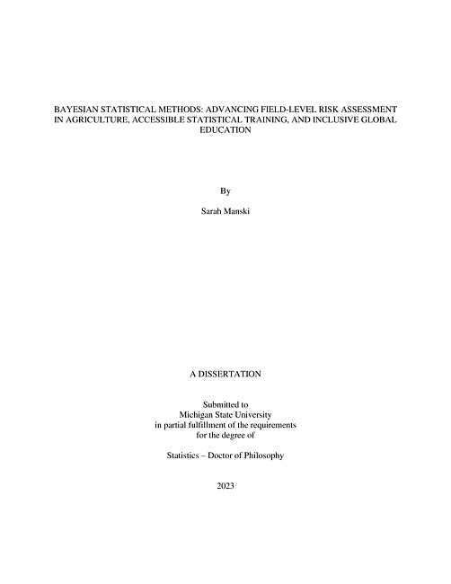 Bayesian Statistical Methods : Advancing Field-Level Risk Assessment in Agriculture, Accessible Statistical Training, and Inclusive Global Education
