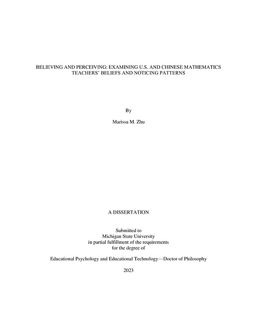 Believing and perceiving : examining U.S. and Chinese mathematics teachers' beliefs and noticing patterns