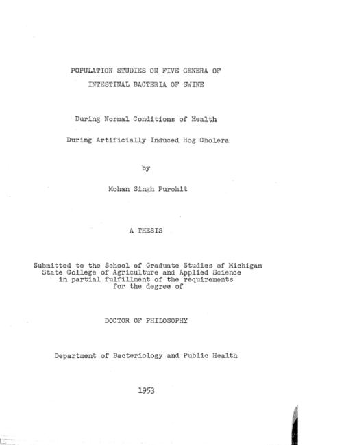 Population studies on five genera of intestinal bacteria of swine during normal conditions of health during artificially induced hog cholera