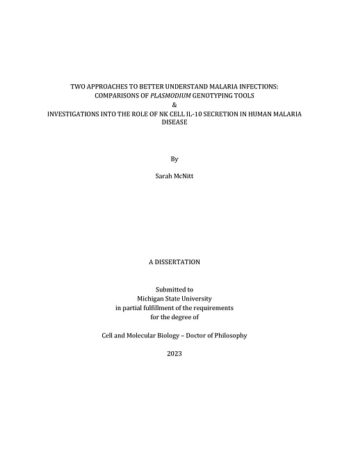 Two Approaches to Better Understand Malaria Infections : Comparisons of Plasmodium Genotyping Tools & Investigations into the Role of NK cell IL-10 Secretion in Human Malaria Disease