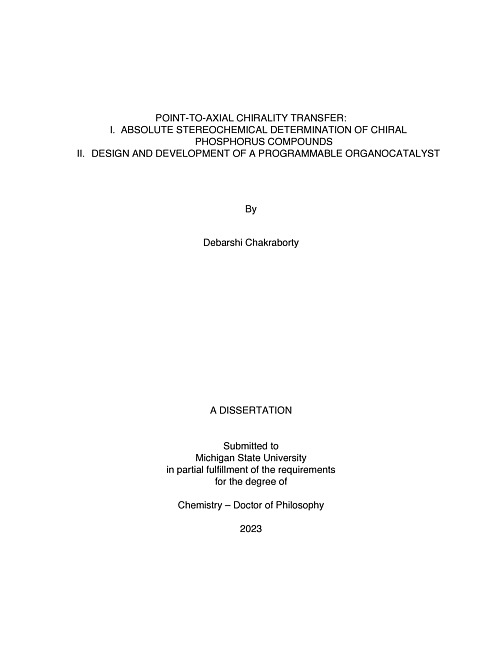 Point-to-axial chirality transfer : I. absolute stereochemical determination of chiral phosphorus compounds II. design and development of a programmable organocatalyst