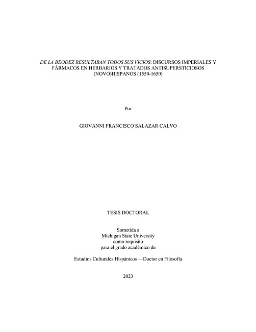 De la beodez resultaban todos sus vicios : discursos imperiales y farmacos en herbarios y tratados antisupersticiosos (novo)hispanos (1550-1650)