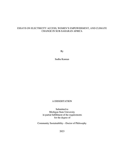 Essays on electricity access, women's empowerment, and climate change in sub-saharan africa