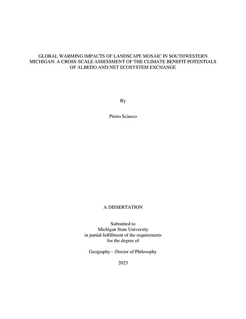 Global warming impacts of landscape mosaic in Southwestern Michigan : a cross-scale assessment of the climate benefit potentials of albedo and net ecosystem exchange