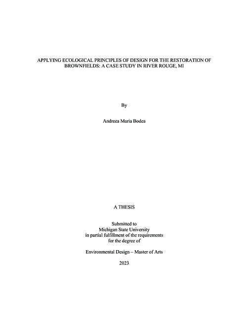 Applying ecological principles of design for the restoration of brownfields : a case study in River Rouge, MI