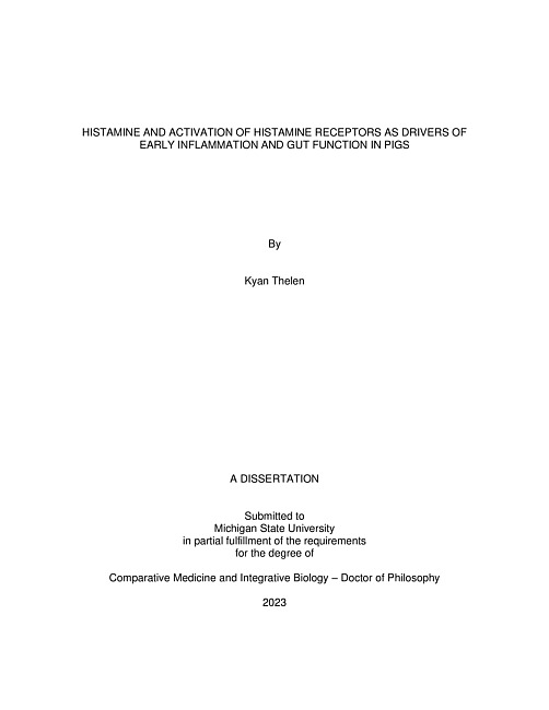 Early life adversity has been established as a major risk factor for the development of inflammatory disease as well as increased mortality in humans. In swine production, weaning is a necessary practice, but is also the most stressful life event that a piglet will endure. Weaning stress-induced increases in inflammation and intestinal permeability occur during the window of developmental plasticity, which has been demonstrated to cause persistent detrimental effects on the gut, including chronic inflammation and epithelial barrier permeability. Despite efforts to improve growth performance and overall health, the lack of targeted interventions is a significant issue. The critical problem regarding the limited understanding of the mechanisms driving early responses to weaning stress urgently needs to be addressed. The objective of this dissertation is to investigate the role of histamine receptors as a potential mechanism and target to mitigate the inflammatory response and gut dysfunction induced by weaning stress.First, we sought to characterize the inflammatory response to weaning stress and the role of histamine receptors. As histamine has been shown to be upregulated in response to stress and histamine receptors are well known to be critical in allergic inflammation, we hypothesized that histamine receptors are responsible for early gastrointestinal (GI) inflammation. To test this, we utilized a porcine weaning model of early life stress and administration of pharmacological histamine receptor antagonists.Next, we investigated the role of histamine receptors in early changes in gut function, including epithelial barrier permeability, nutrient transport, and neural-evoked secretions. Through the employment of Using Chambers analyses, we were able to make ex vivo assessments of the aforementioned gut functions in response to weaning stress, as well as in response to selective inhibition of histamine receptors.Together, our data indicate that histamine receptor subtypes play critical, yet distinct roles in mediating early weaning stress responses in pigs. This provides evidence that histamine and histamine receptors are novel biological targets in mitigating early inflammatory and functional responses to stress in the gut. Future studies should focus on long-term effects of histamine receptors in GI development post weaning stress, as well as determining their role in secondary immune challenges.