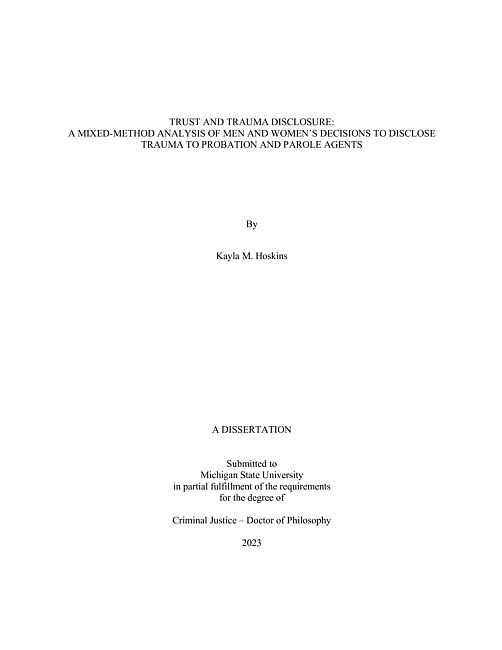 Trust and trauma disclosure : a mixed-method analysis of men and women's decisions to disclose trauma to probation and parole agents