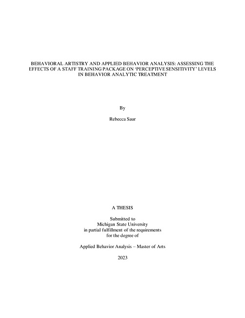 Behavioral artistry and applied behavior analysis : assessing the effects of a staff training package on 'perceptive sensitivity' levels in behavior analytic treatment