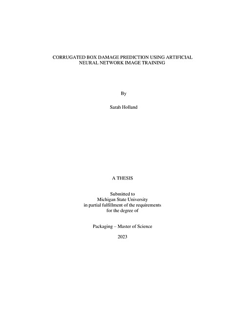 This thesis proposes a novel packaging evaluation method using corrugated box images and an Artificial Neural Network (ANN). An Artificial Neural Network works in a way similar to that of neurons in a human brain: by making connections between a trained dataset and the new data provided after training. The ANN has been implemented in the industry in various ways but limited in the packaging evaluation. This paper is focused on the corrugated box damage prediction using ANN. By capturing the damaged corrugated box images with an Artificial Neural Network, damaged products can be identified allowing a decision to be made as to what type of package failure occurred. One of the benefits to using an Artificial Neural Network to evaluate corrugated box images is that it allows for the evaluation of package protection in a real distribution environment as compared to a controlled lab setting. In turn, this reduces the cost of testing, as the package failure will have been identified with the assistance of the Artificial Neural Network, rather than full retesting to identify where damage occurred. This process would also reduce costs associated with the usage of materials for testing, due to the lower number of test samples required.
