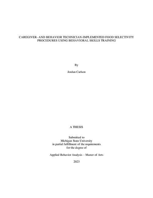 By using procedures found in Behavioral Skills Training (BST), caregivers and Behavior Technicians (BTs) alike have the ability to successfully implement food selectivity training with their children and clients, thus increasing their consumption of non-preferred food items to promote healthier and more well-rounded diets. Two caregivers of children diagnosed with Autism Spectrum Disorders (ASD) and two BTs with clients who demonstrated symptoms of food selectivity administered Differential Reinforcement of Incompatible (DRI) behaviors to increase the consumption of a targeted non-preferred food item. Through a series of case studies, the use of BST procedures produced a repeated demonstration of effect in correct caregiver- and BT-implementation of DRI procedures in the home and the clinic targeting increased bite consumption of non-preferred foods in children with autism experiencing food selectivity.