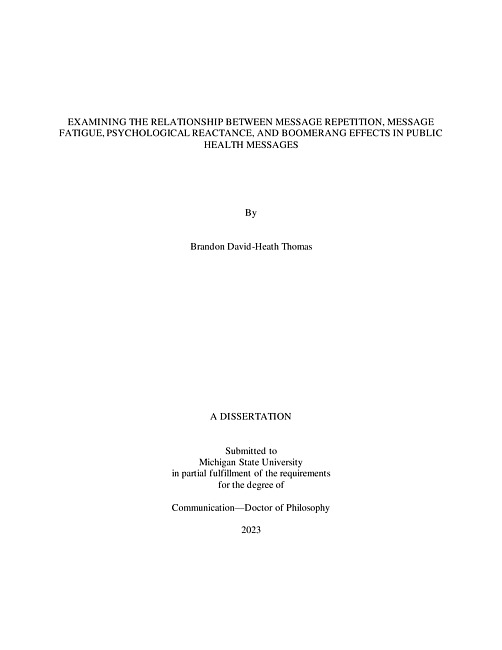 This dissertation investigates how using an innovative text message-based approach to repeated public health messages can influence experiences of message fatigue, psychological reactance, and boomerang effects, as well as the mediating role that message fatigue plays between repetition and outcomes of psychological reactance and boomerang effects. Participants (N=179) were exposed to one of two health messages containing information related to either HPV or breast cancer risk, daily, over a four-day period by disseminating the message via text message. After each exposure, participants completed a survey measuring experiences of message fatigue, psychological reactance, and boomerang effects. Results indicate that message repetition leads to message fatigue, psychological reactance, and boomerang effects, although the rate at which these are impacted vary. Further, results suggest that message fatigue may act as a precursor, or warning sign, of additional unintended outcomes of psychological reactance and boomerang effects, and that message fatigue mediates the relationship between message repetition and experiences of reactance and boomerang effects. These data show that message fatigue provides a useful lens to further understand unintended effects of public health message repetition. Both implications for public health communication practice and communication theory are discussed, as well as future directions for this line of research.℗