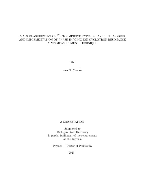 Mass measurement of 27p to improve type-I x-ray burst models and implementation of phase imaging ion cyclotron resonance mass measurement technique
