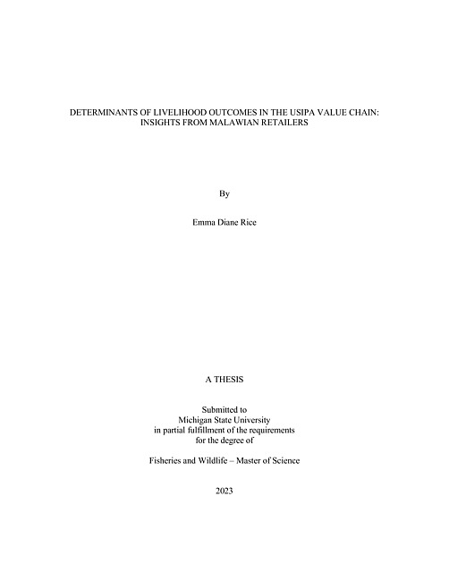 Determinants of livelihood outcomes in the Usipa value chain : insights from mMlawian retailers