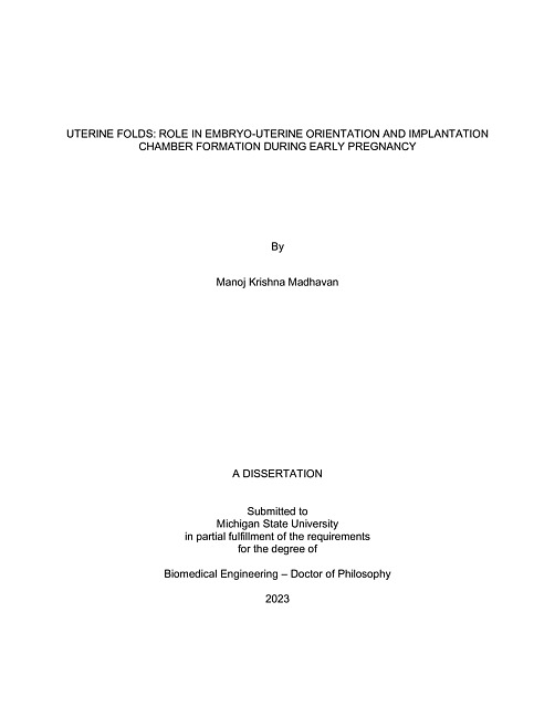 Uterine folds : role in embryo-uterine orientation and implantation chamber formation during early pregnancy