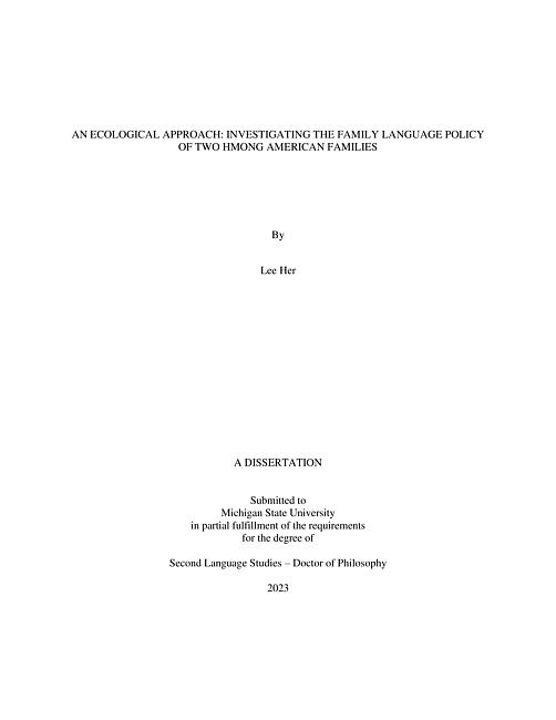 As states like California adopt a more multilingual ideology in their public education, more heritage language education is being offered via parent advocated dual language programs to aid in heritage language maintenance. While previous research on dual language programs and family language policy have sought to investigate heritage language maintenance, there is a scarcity of research that examines how the two domains, public education and the home domain can work together to promote heritage language maintenance. Framed by King et al.'s (2008) conceptualization of family language policy, which considers language beliefs, language practices and language management, in conjunction with the Douglas Fir Group's (2016) ecological transdisciplinary framework for second language acquisition, this multiple case study investigates two Hmong-American families' language policy in relation to a Hmong-English dual language program, where their children are enrolled. Specifically, it explores how the families' access to a dual language program influences their language beliefs and practices, while also considering other micro, meso, and macro level factors. Interviews, artifacts, and family recorded interactions were utilized to get a full understanding of what factors at the different levels of interaction shaped their family language policy. Beyond a sole focus on the parents, the study also explores child agency and negotiation of the family language policy.The study reveals that both sets of parents perceived the relationship between the home and school as a partnership for their children's heritage language development, with the school taking on the onus for Hmong literacy. This resulted in both families' more secondary role and thus home language practices to merely supplement the school content. Importantly, while both sets of parents held similar beliefs regarding the role of the dual language program in heritage language maintenance, it was their different beliefs in the value of Hmong for their children's future in the US context that led to the different family language policies between the families. The study also reveals that beyond the school domain, the church domain can also help reinforce heritage language maintenance. Other factors, based on the parent's own personal and professional experiences, that influenced their family language policy include: 1) their alignment or misalignment with macro ideologies about English for capital, 2) heritage language maintenance for community, 3) their state context in California, 4) heritage language maintenance for ethnic and cultural identity, and 5) their own literacy or lack thereof in the heritage language. The findings also reveal how children agentively 1) influence sibling investment in the heritage language and 2) model and facilitate heritage language learning for siblings.Congruent with previous research, the study confirms that while family language policy is concerned with home language use, it operates within a larger sociocultural context, with oftentimes overlapping domains, each with their own language beliefs (e.g., school domain, church domain, state domain). Therefore, family language policy must be analyzed through a holistic lens that considers how these domains support or shift heritage language maintenance. Crucially the findings also support previous research that heritage language maintenance requires a concerted effort between families and a variety of other domains. While the Hmong-English dual language program plays a crucial role in Hmong literacy, it is not enough to foster and maintain the heritage language, without support from other domains.The study offers important implications for families wanting to raise their children bilingually in their heritage language, and for schools interested in wanting to better serve their heritage language learners and their families.