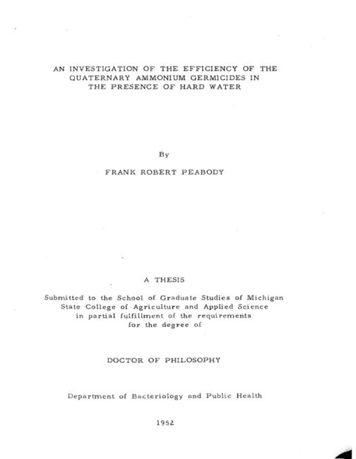 An investigation of the efficiency of the quaternary ammonium germicides in the presence of hard water