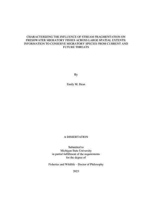Characterizing the influence of stream fragmentation on freshwater migratory fishes across large spatial extents : information to conserve migratory species from current and future threats