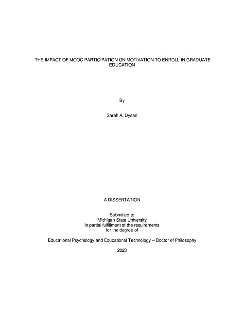 This study examined ways in which participation in Massive Open Online Courses (MOOCs) influenced aspects of learners' achievement motivation and decisions to enroll in a master's degree program by offering low-cost and low-commitment ways to sample the learning experience. Participants in this study (n = 197) were enrolled in two MOOC courses associated with a data science master's degree program, and were surveyed pre- and post-course to measure motivational and self-regulated learning strategy variables, as well as intentions to enroll in a degree program. Self-efficacy and intrinsic value significantly increased as learners progressed through the course, as predicted. However, attainment value increased and utility value did not change, which were unexpected. Opportunity costs declined unexpectedly, while effort and psychological costs remained stable. Self-efficacy had a negative relationship with intentions to enroll in a degree program, which was unexpected. However, attainment value had a positive relationship with intentions to enroll, as expected. Gender, age, first-generation student status, and underrepresented minority status among learners did not moderate the relationship between motivational variables and intentions to enroll, as predicated. Self-regulated learning strategies such as goal setting, strategic planning, and help seeking did not have a statistically significant relationship with intentions to enroll in a degree program when controlling for motivational variables.℗ This study examines learning in innovative, non-traditional learning environments, with a population of learners that has different characteristics and motivations for pursuit of learning. The difference in contexts between MOOC and formal degree environments, as well as differences in the learners engaging in each of these learning experiences, likely contributed to the many unanticipated findings. Researchers should carefully evaluate assumptions regarding how the new context establishes similar or different affordances and constraints that enable the same relationships between constructs as have been seen in traditional educational℗ environments. Measurement of constructs should also be critically evaluated to ensure established measures are applicable to these new environments and populations.