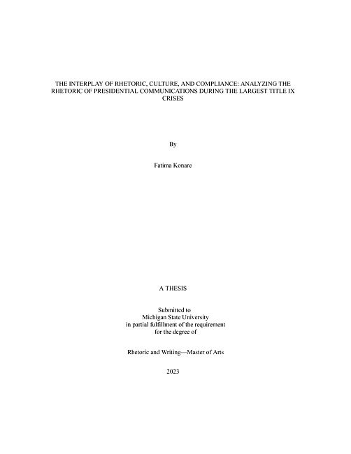 The interplay of rhetoric, culture, and compliance : analyzing the rhetoric of presidential communications during the largest Title IX crises