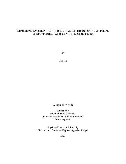 Numerical investigation of collective effects in quantum optical media via integral operator electric fields