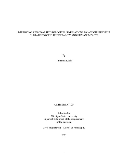 Advancing the understanding of the changes in various water budget components is crucial for improved water resource assessment and management at the global, continental, and river basin scales. This is important, especially because the intensified hydrologic dynamics due to climate change and accelerated human activities are altering the terrestrial water cycle in unprecedented ways and over a range of scales. Land surface models (LSMs) are widely used to investigate the changes in water resources resulting from natural and human-induced alterations. However, these models are subject to inherent uncertainties, including those associated with climate forcing and model parameterizations. Therefore, there is an urgent need to address climate forcing induced uncertainties in hydrological simulations using process based LSMs. In addition, representing human impacts such as irrigation and groundwater pumping in LSMs is critical for improving hydrological simulations. This dissertation advances regional hydrological simulation, addressing climate forcing uncertainty, by leveraging the potential of emerging satellite data and using an advanced LSM. A comprehensive analysis is conducted using a fully-process based LSM to examine the propagation of precipitation uncertainty into hydrological simulations over the Mekong River Basin (MRB). The Community Land Model version 5 (CLM5) at a relatively high spatial resolution of 0.05℗ʻ (⁸́ơ5 km) and without any parameter calibration is implemented. Simulations conducted using different precipitation datasets are compared to investigate the discrepancies in streamflow, terrestrial water storage (TWS), soil moisture, and evapotranspiration (ET). Furthermore, this dissertation advances the simulation of basin wide groundwater dynamics in the MRB, providing key insights on the evolving groundwater system and improving process-based groundwater modeling capabilities by implementing CLM5 with groundwater and irrigation parameterizations. An in-depth analysis is℗ conducted to examine groundwater mechanisms in the MRB, focusing on groundwater flow processes that are modulated by climate variability and physiographic features, and primary drivers of groundwater-surface water interactions. Further, the influence of extensive irrigation and groundwater pumping on groundwater dynamics is quantified. Finally, global drought recovery and its drivers across different climate zones and biodiversity hotspots are investigated using multi-model hydrological simulations, enhancing the understanding of future drought risk and ecosystem resilience. The key findings from the aforementioned multi-scale analyses are: (1) precipitation is a key determinant of simulated streamflow and peak flow is particularly sensitive to precipitation input; notable differences are also found among TWS, soil moisture, and ET simulated using different precipitation products. (2) Precipitation data with a higher spatial resolution did not improve the simulations, contrary to the common perception that using meteorological forcing with higher spatial resolution would improve hydrological simulations. (3) High spatial heterogeneity in groundwater recharge and discharge across the MRB is governed by climate and subsurface characteristics; a pronounced seasonality is found in groundwater recharge; with substantial carryover to the consecutive dry season that alleviates soil moisture. (4) Groundwater discharge is a dominant source of streamflow all year round, and irrigation pumping is directly altering groundwater flows and storages. (5) Climate variability smoothens pumping effects over long times, but the model simulates region-wide groundwater depletion in the Mekong Delta during dry years. (6) The drought recovery time varies considerably across different climate regions globally, and there has been a notable increase in drought recovery time over the last few decades. This dissertation provides crucial insights on precipitation-induced uncertainties in hydrological modeling, also advancing process-based groundwater modeling capabilities for regional scale application.
