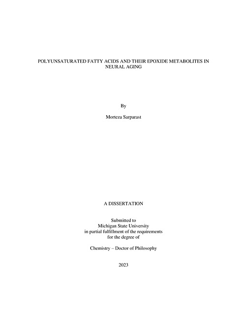 In this dissertation, we explored the role of polyunsaturated fatty acid (PUFA) metabolites in neurodegeneration, Alzheimer's disease (AD), and aging, using Caenorhabditis elegans (C. elegans) as a model organism. Our investigation focused on the impact of cytochrome P450 (CYP)and epoxide hydrolase (EH) metabolic pathways on ferroptosis-mediated neurodegeneration, the relationship between oxylipins and AD pathology, and the influence of CYP-EH metabolites on lifespan, healthspan, and reproduction.We discovered that dihomo gamma linolenic acid (DGLA), a specific Ï⁹-6 PUFA, triggers ferroptosis-mediated neurodegeneration in dopaminergic neurons. This neurodegenerative effect occurs when DGLA is metabolized into dihydroxyeicosadienoic acid (DHED) via the action of CYP and EH enzymes. Our mechanistic study showed that it is the DHED metabolite that drives the neurodegenerative process, highlighting the critical role of CYP-EH-mediated PUFA metabolism in ferroptosis regulation. Consequently, this study identifies EH as a potential novel therapeutic target for addressing ferroptosis-related diseases and underscores the importance of understanding PUFA metabolism in the development of innovative treatment strategies.We further uncovered an intricate relationship between oxylipins, AÎø, and tau in neurodegeneration, demonstrating that AÎø and/or tau expression in C. elegans disrupts the oxylipin profile. EH inhibition alleviated the ensuing neurodegeneration, likely through elevating the epoxy-to-hydroxy ratio of various CYP-EH metabolites. This study established a link between AÎø and/or tau expression and CYP-EH metabolites, highlighting the potential therapeutic implications of epoxide hydrolase inhibition in AD.Lastly, we investigated the impact of pharmacological inhibition and genetic knock out of EH on the lifespan, healthspan, and reproductive capabilities of C. elegans and analyzed the corresponding alterations in oxylipin profiles. While the lifespan and reproduction remained unchanged in wild-type worms treated with the epoxide hydrolase inhibitor, AUDA, the genetic knockout of either ceeh-1 or ceeh-2 significantly shortened the lifespan and decreased egg production capacity. Although we identified significant changes in CYP-EH metabolites across experimental groups, the specific metabolites responsible for these effects remain elusive, mainly due to experimental challenges in testing a large number of compounds with possible synergistic effects during aging. Conventional techniques, such as agar plates, are limited by the difficulties in manual phenotypic and lifespan analyses, as well as in maintaining age-synchronized worms due to time-consuming progeny elimination processes. We discussed potential solutions, including high-throughput assays and microfluidic devices, to study the effect of numerous compounds on aging. However, we recognized that current techniques, like the use of 5-fluoro-2-deoxyuridine (FUDR) and PDMS-based microfluidic systems, present limitations that could interfere with the study of CYP-EH metabolites.Overall, this dissertation sheds light on the complex relationship between dietary PUFAs, their metabolites, and neurodegenerative diseases. It highlights the potential therapeutic value of targeting specific CYP-EH metabolites and sets the stage for future research in understanding their role in aging and neurodegeneration using the C. elegans model.