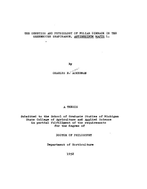 The genetics and physiology of foliar dieback in the greenhouse snapdragon, Antirrhinum majus L