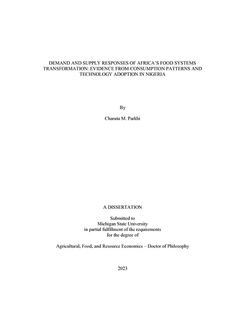 Demand and supply responses of Africa's food systems transformation : evidence from consumption patterns and technology adoption in Nigeria