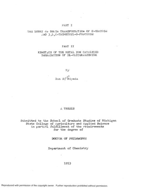 Part I. The Lobry de Bruyn transformation of D-glucose and 3,4,6-trimethyl-D-fructose. Part II. Kinetics of the metal ion catalyzed degradation of DL-glyceraldehyde