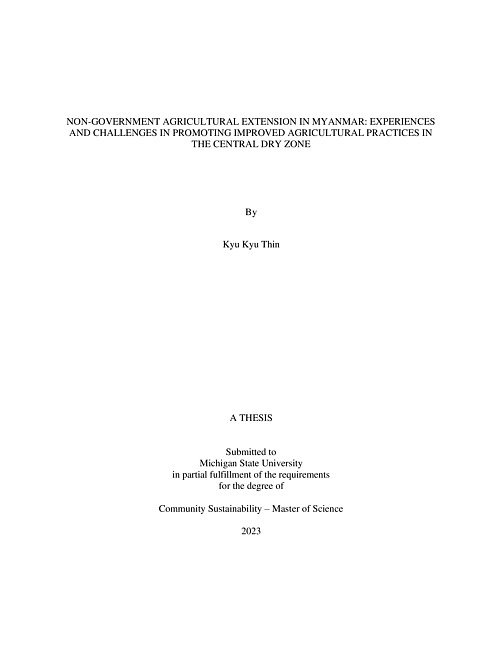 Non-government agricultural extension in myanmar : experiences and challenges in promoting improved agricultural practices in the central dry zone
