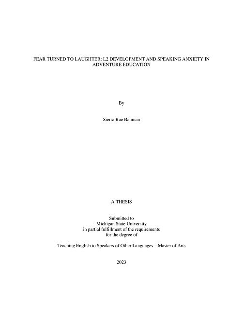 Fear turned to laughter : l2 development and speaking anxiety in adventure education