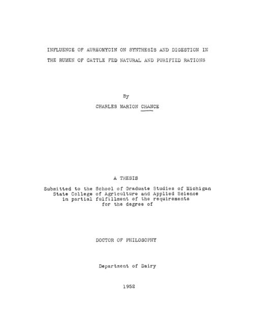 Influence of aureomycin on synthesis and digestion in the rumen of cattle fed natural and purified rations