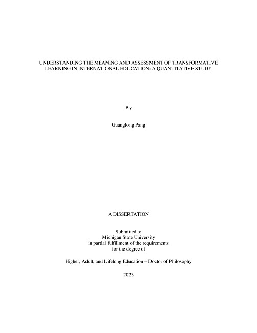 Understanding the meaning and assessment of transformative learning in international education : a quantitative study