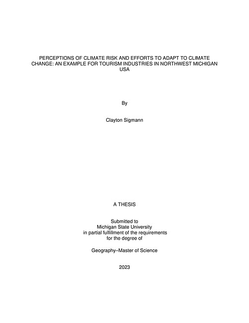 Perceptions of climate risk and efforts to adapt to climate change : an example for tourism industries in northwest Michigan USA