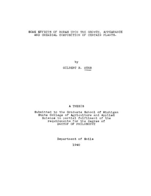 Some effects of borax upon the growth, appearance & chemical composition of certain plants