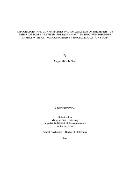 EXPLORATORY AND CONFIRMATORY FACTOR ANALYSIS OF THE REPETITIVE BEHAVIOR SCALE – REVISED (RBS-R) IN AN AUTISM SPECTRUM DISORDER SAMPLE WITH RATINGS COMPLETED BY SPECIAL EDUCATION STAFF