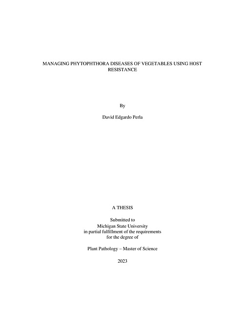 MANAGING PHYTOPHTHORA DISEASES OF VEGETABLES USING HOST RESISTANCE