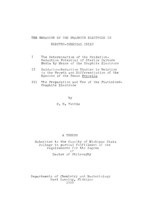 The behavior of the graphite electrode in electro-chemical cells : I. The determination of the oxidation-reduction potential of steile culture media by means of the graphite electrode. II. Oxidation-reduction studies in relation to the growth and diffe...