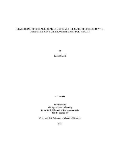 DEVELOPING SPECTRAL LIBRARIES USING MID INFRARED SPECTROSCOPY TO DETERMINE KEY SOIL PROPERTIES AND SOIL HEALTH