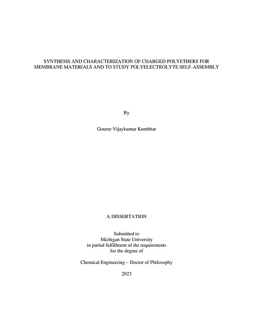 SYNTHESIS AND CHARACTERIZATION OF CHARGED POLYETHERS FOR MEMBRANE MATERIALS AND TO STUDY POLYELECTROLYTE SELF-ASSEMBLY