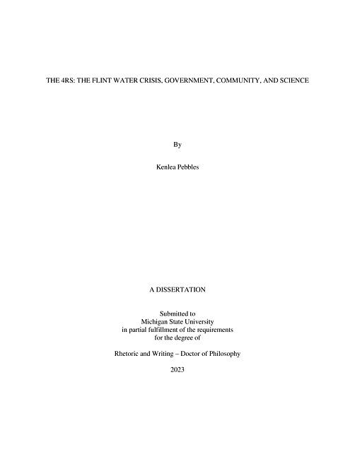 THE 4RS : THE FLINT WATER CRISIS, GOVERNMENT, COMMUNITY, AND SCIENCE