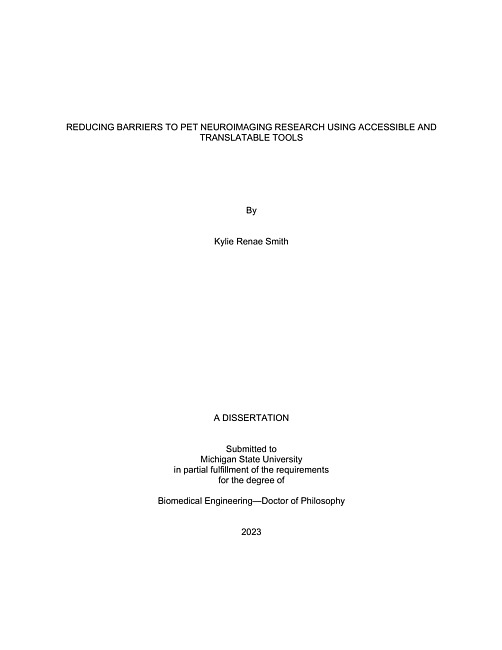 REDUCING BARRIERS TO PET NEUROIMAGING RESEARCH USING ACCESSIBLE AND TRANSLATABLE TOOLS