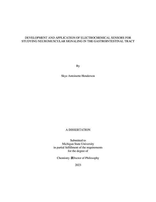 DEVELOPMENT AND APPLICATION OF ELECTROCHEMICAL SENSORS FOR STUDYING NEUROMUSCULAR SIGNALING IN THE GASTROINTESTINAL TRACT