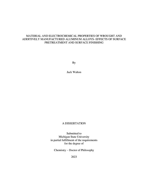 MATERIAL AND ELECTROCHEMICAL PROPERTIES OF WROUGHT AND ADDITIVELY MANUFACTURED ALUMINUM ALLOYS- EFFECTS OF SURFACE PRETREATMENT AND SURFACE FINISHING