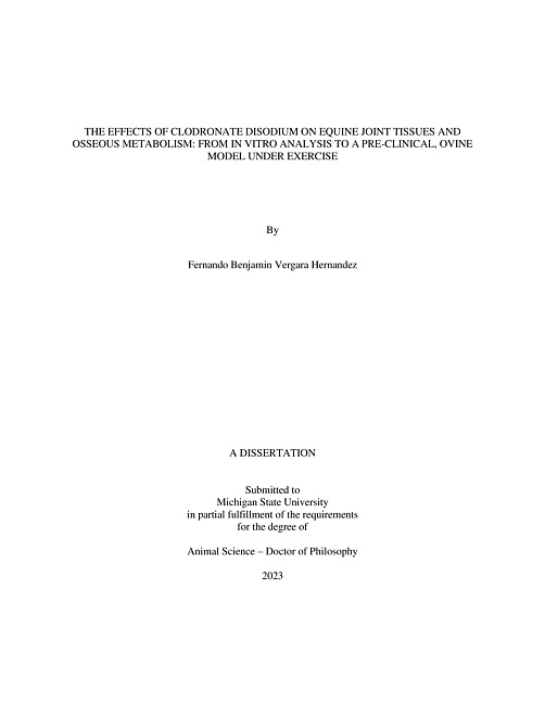 THE EFFECTS OF CLODRONATE DISODIUM ON EQUINE JOINT TISSUES AND OSSEOUS METABOLISM : FROM IN VITRO ANALYSIS TO A PRE-CLINICAL, OVINE MODEL UNDER EXERCISE
