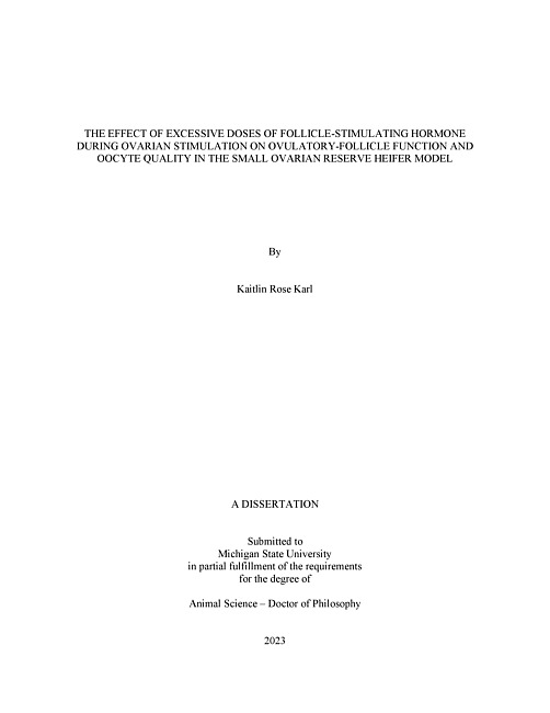 THE EFFECT OF EXCESSIVE DOSES OF FOLLICLE-STIMULATING HORMONE DURING OVARIAN STIMULATION ON OVULATORY-FOLLICLE FUNCTION AND OOCYTE QUALITY IN THE SMALL OVARIAN RESERVE HEIFER MODEL
